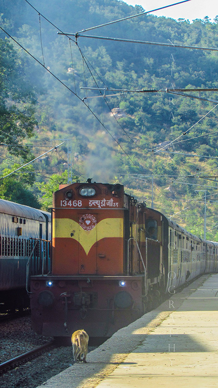 Wide angle shot of KJM WDP4D with late running Delhi - Yesvantpur Duronto Express